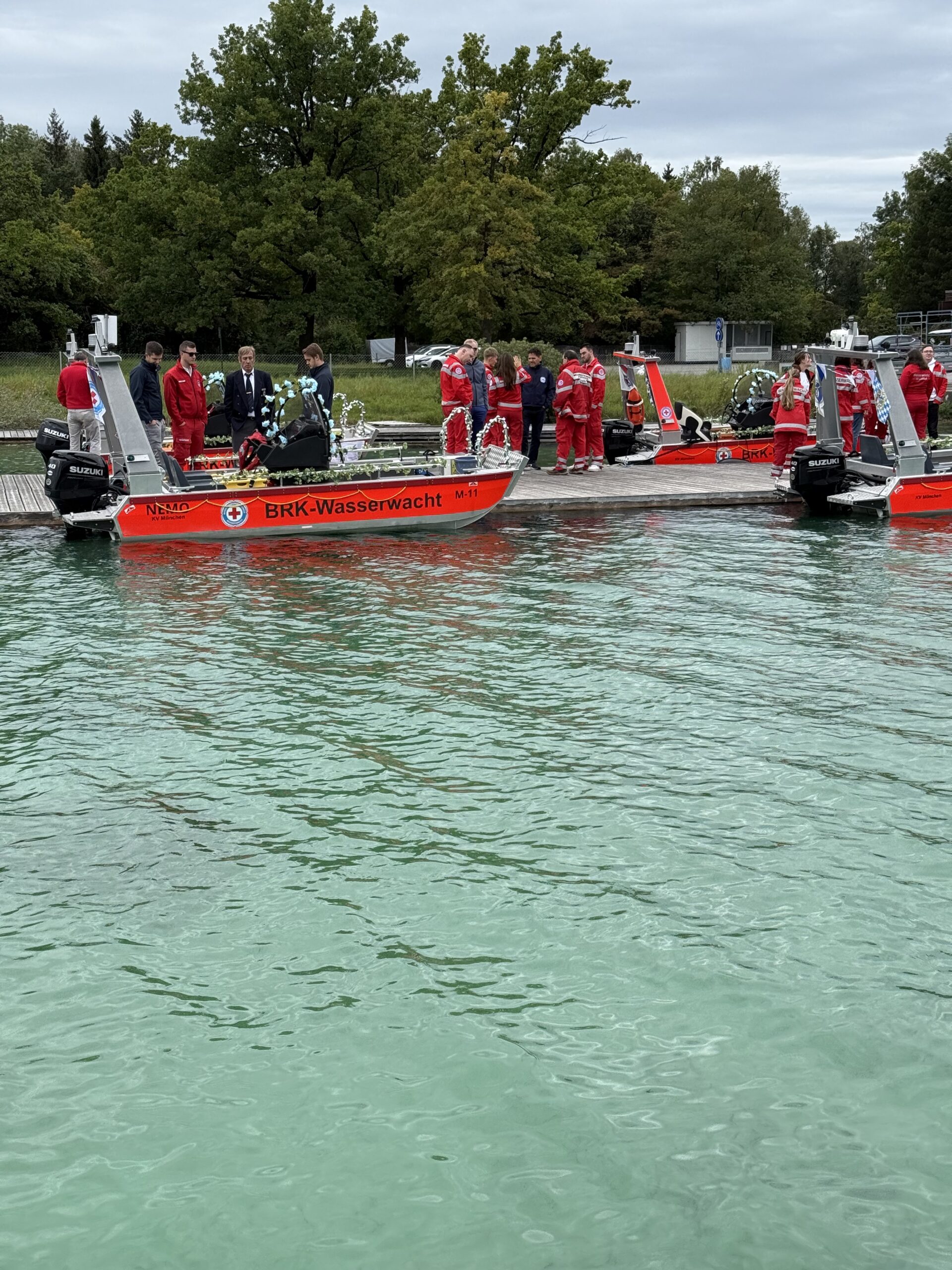 Die Stille und herbstliche Stimmung des Wetters an diesem Freitag Nachmittag sollte nicht darüber hinwegtäuschen, dass in München das Ehrenamt der BRK Wasserwacht das ganze Jahr hindurch und rund um die Uhr für die “Integrierte Leitstelle” der Berufsfeuerwehr München alarmierbar ist. Da überrascht es wenig, dass auch OB Dieter Reiter dabei ist, wenn die BRK Wasserwacht vier neue Motorrettungsboote in Dienst stellt. Diese Boote werden die Bisherigen an Lerchenauer See, Feringa See, Heimstettener See und Unterschleißheimer See stationierten Motorrettungsboote ersetzen.